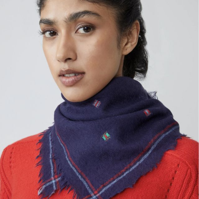 La sciarpa Chelsea N°815 celebra l'arte della tessitura tradizionale con i suoi piccoli motivi a forma di bandiera, fatti a mano utilizzando l'antica tecnica indiana del jamdani. Leggero e fluido, evoca l'eleganza senza tempo di un clan unito dai suoi simboli, mescolando patrimonio artigianale e modernità con una singolare delicatezza.