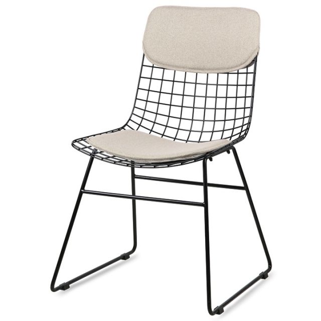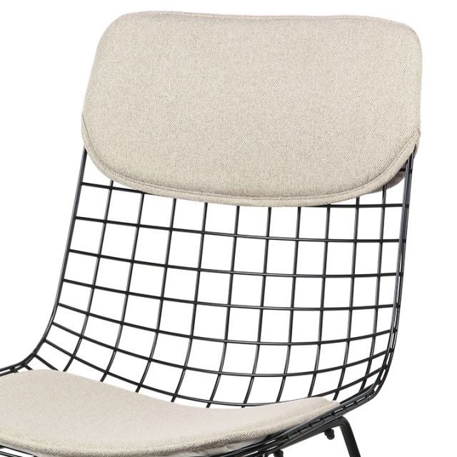 Migliora il tuo comfort con il kit per sedie a filo metallico. Il kit comfort è composto da un cuscino colorato di sabbia per lo schienale, i braccioli e il sedile della sedia in filo metallico. All'interno del cuscino ci sono pezzi di nastro adesivo che possono essere attaccati alla seduta della sedia metallica.