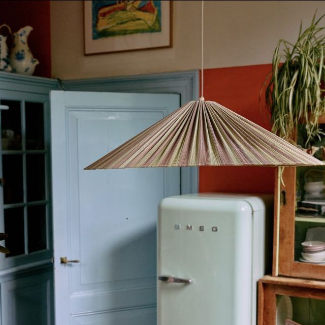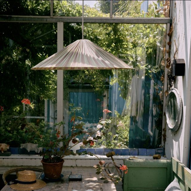 Lampada Verdura combina una silhouette a pieghe con audaci strisce verdi e marroni, portando consistenza e ritmo al tuo soffitto. La luce filtra delicatamente attraverso la superficie intrecciata, proiettando ombre morbide e un'atmosfera calda e organica. Una nuova resione dell'illuminazione artigianale con una presenza seria.