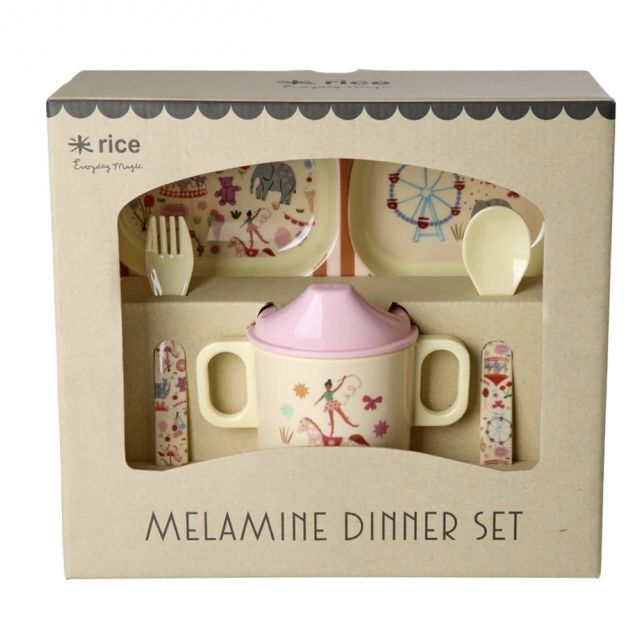 Cod. BABOX-4ZFUFAI Melamine Baby Dinner Set in Gift Box - Pink Fun Fair Print - 4 pcs