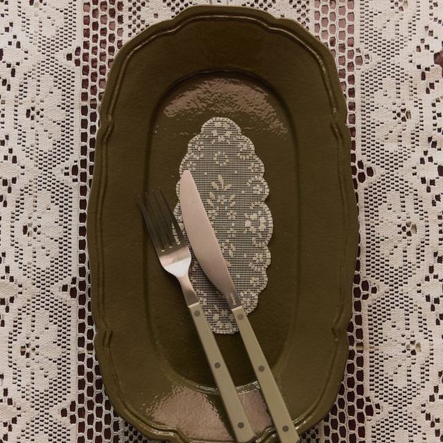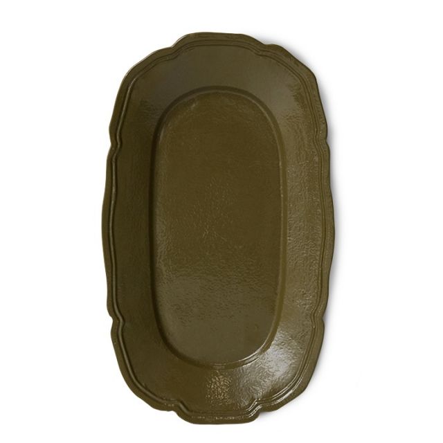 Forma senza tempo, aggiornata nel tono. Questo vassoio in metallo verde oliva presenta una finitura liscia e tinta unita che sembra sia radicata che moderna. La sua curva sottile e la superficie rivestita aggiungono un bordo silenzioso a qualsiasi superficie: funzionale, fresca e raffinata.