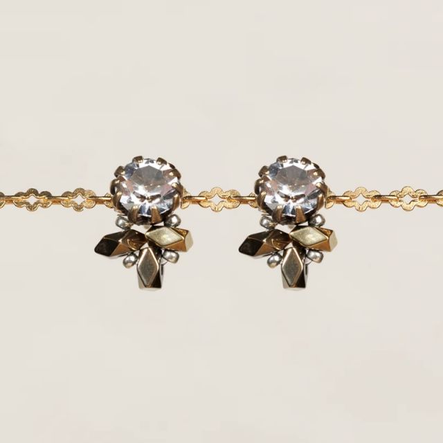 Un piccolo e delicato fiore in cristallo ed ematite impreziosito da piccole perline di fiume.