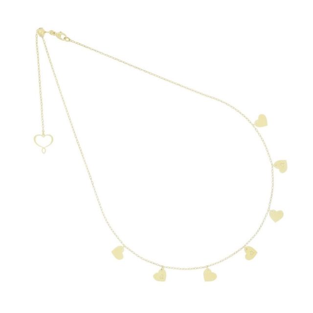 Girocollo con sette cuori pendenti realizzato in argento 925 con galvanica oro giallo ad alto spessore e resistenza.